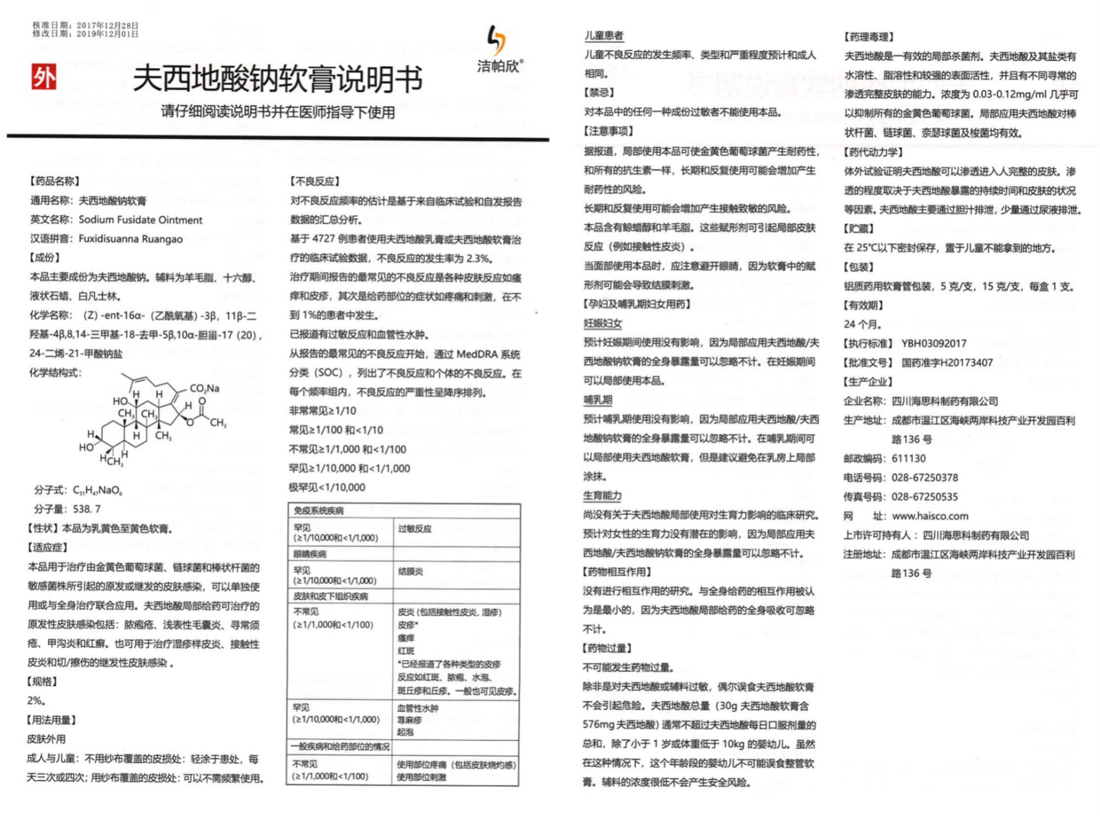 【通用名】夫西地酸鈉軟膏